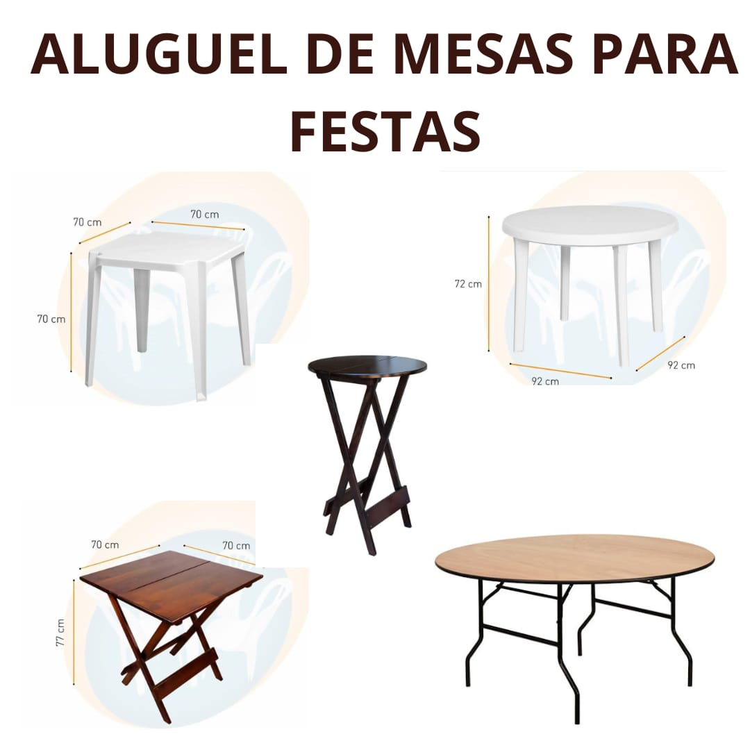 Realizamos: Aluguel de Mesas, Aluguel de Cadeiras, Aluguel de Pranchões, Aluguel de Toalhas, Aluguel de Tinas, Aluguel de Isopor, Aluguel de Tendas ou Lonas, Aluguel de Chopeira, Aluguel de Churraqueira, Aluguel Talheres e Louças, e o fornecimento de Material para Festas, Descartáveis, Bebidas, Gelo, Água Mineral e outros.